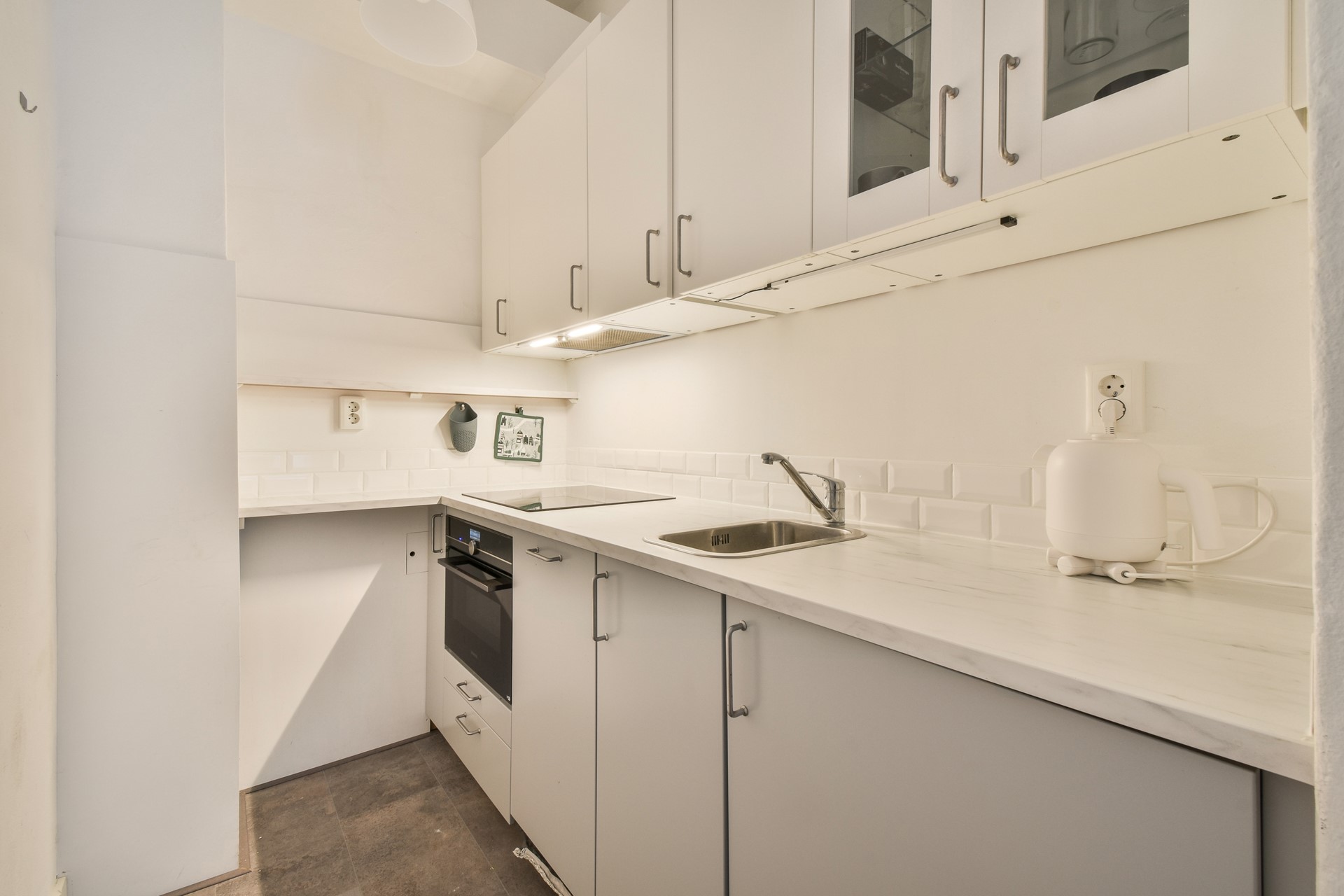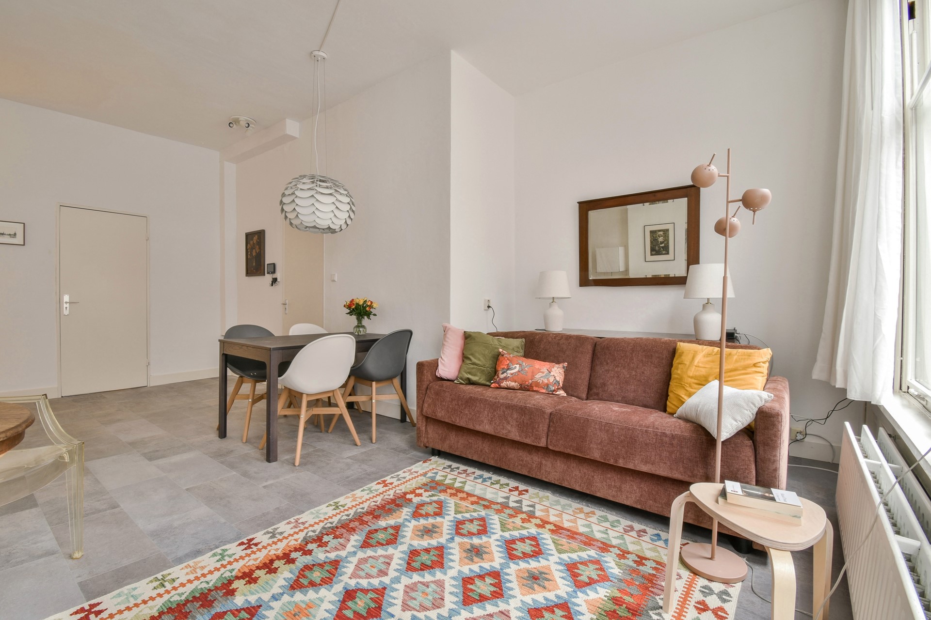The communal staircase leads to the entrance on the second floor. The living room is located at the front of the house overlooking the Nieuwe Hoogstraat. The kitchen is equipped with a refrigerator with freezer, a dishwasher, an induction hob, a combination oven and an extractor.