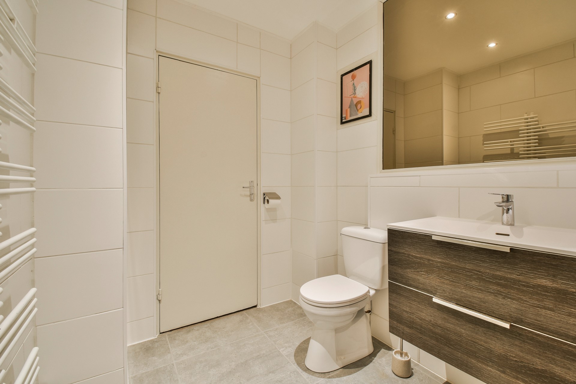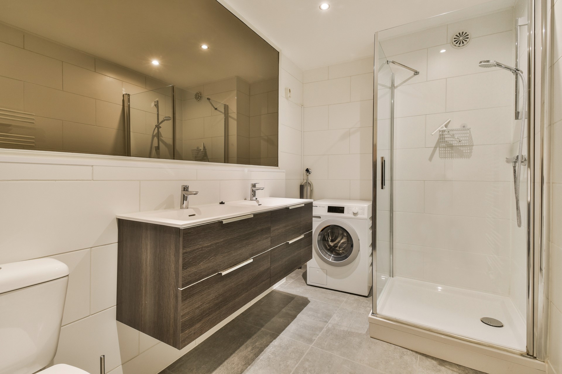 Via de slaapkamer heb je toegang tot de badkamer. De slaapkamer heeft een dubbele wastafel, douche, toilet en wasmachine.