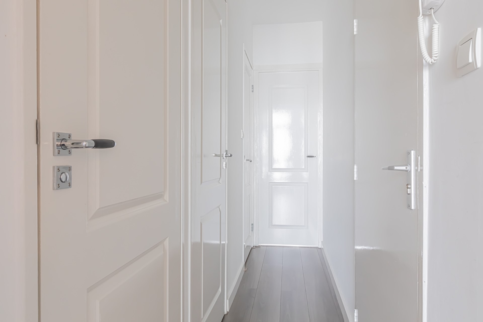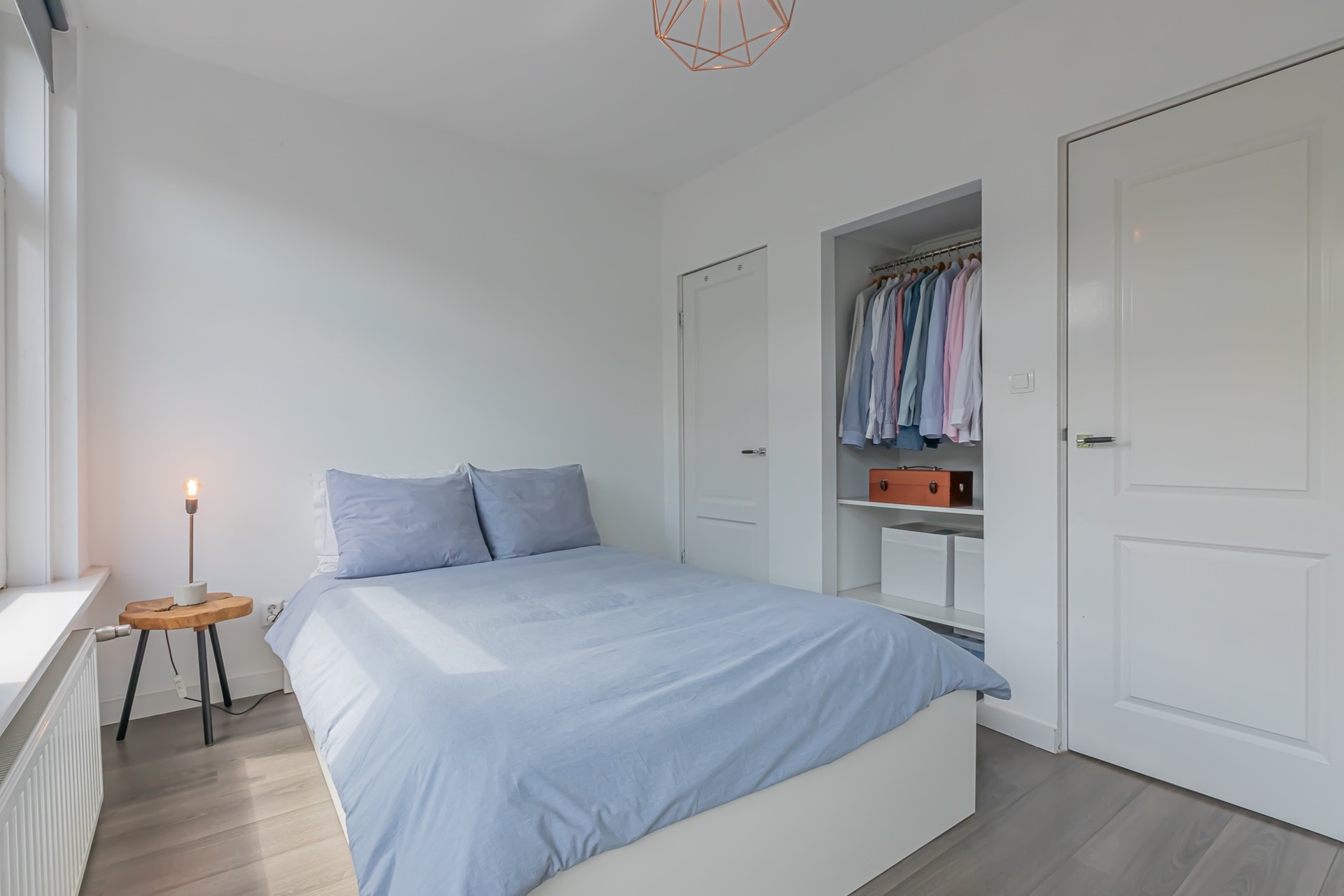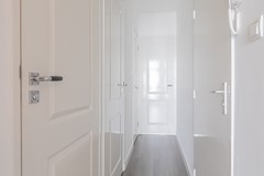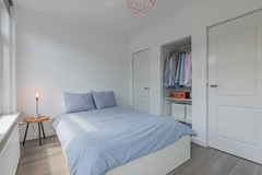 Via the shared entrance on the ground floor, the apartment is reached by stairs to the second floor. From the stairwell you enter the hallway. At the front of the apartment is the bedroom, featuring a built-in wardrobe.